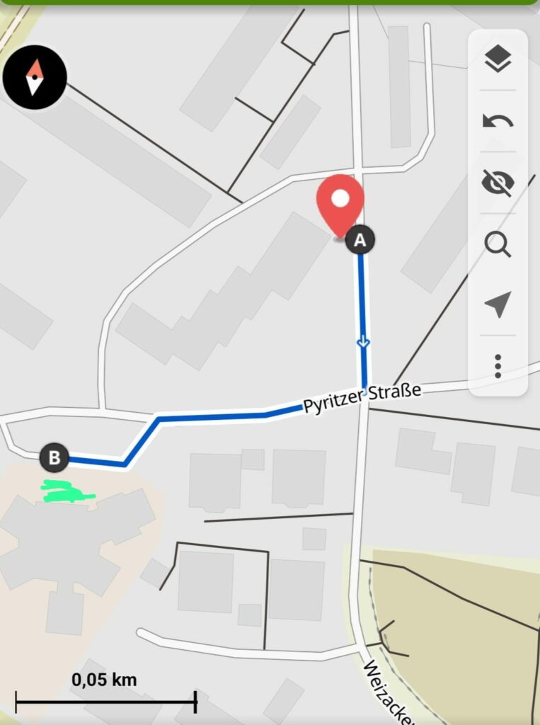 34497 Korbach Pyritzer Str.18-22 Punkt A ist der Standort unseres Clubraums. Direkt davor befindet sich eine Bushaltestelle. Bei Punkt B gibt es einen Parkplatz, an den ein Kindergarten angegliedert ist.